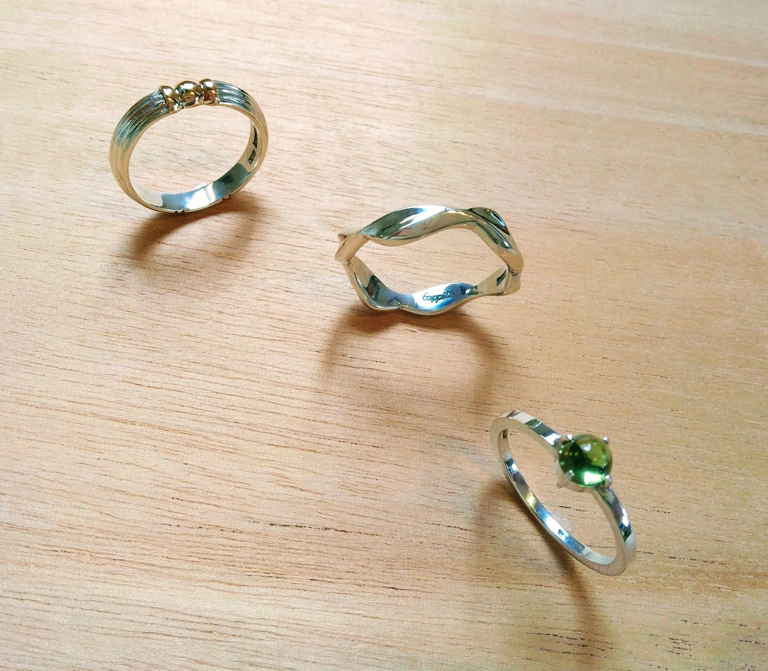 左の指輪はシルバーと10金です。右の指輪はペリドットを使用しています。