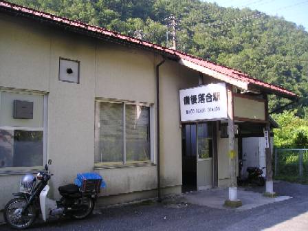 | 駅より少し坂を下りると備後落合の小さな集落があります | 待合室の中。閉鎖された窓口が現状を物語っています(おわり) |