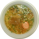 かやくを乗せて熱湯4分、粉末スープを混ぜ液体スープを混ぜて完成。 一面に広がるネギの景色がスゴイ。汁と一緒に口に入れないとこってり過ぎなのか?と予想できる。 地元産の醤油にこだわったというスープは少々油くどいが、飲みやすく口に美味さが残る。 中太ストレート麺は汁を絡めにくいので一緒にスープをすすると美味し。 叉焼は肉肉しく、シナチクはコリコリと、こちらも美味し。 |