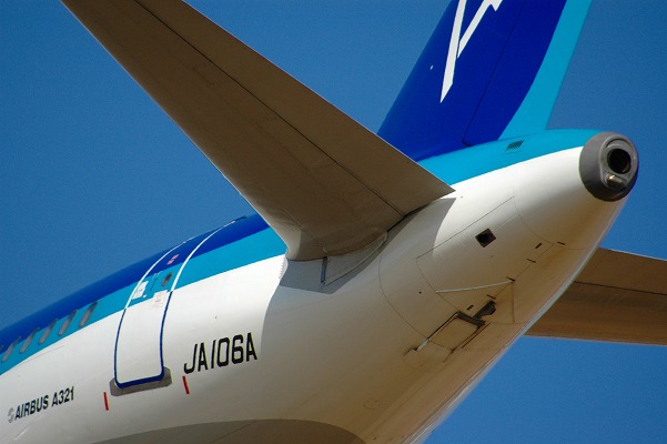 エアバスA321型機のお尻の下! 手が届きそうだ!!