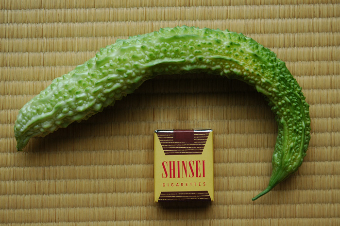 これが白いゴウヤです、真っ白ではありませんが緑が少なく全体に白っぽく