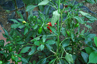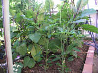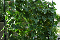 3年ほど前から、雑木林を整理して屋敷の一部分に小さいながら畑をつくりました。年々百姓の腕も上達し、少しづつ畑らしくなってきました。昨年の夏はゴウヤが豊作でゴウヤファンになってしまいました。特に今年は、JA2BRI局からめずらしい白いゴウヤの種をいただきましたので収穫が楽しみです。他には、きゅうり、ナス、ピーマン、おぐら、獅子唐、トマト、かぼちゃ、ラッキョウ、にら等も植えすくすくと育っています。最近は、暑さにもめげず麦藁帽子に長靴スタイル(皆様にお見せできないのが残念!!)で真っ黒になって張り切っております。これから日増しに変化してゆく作物の様子などを編集して行きますので時々は覗いてください。