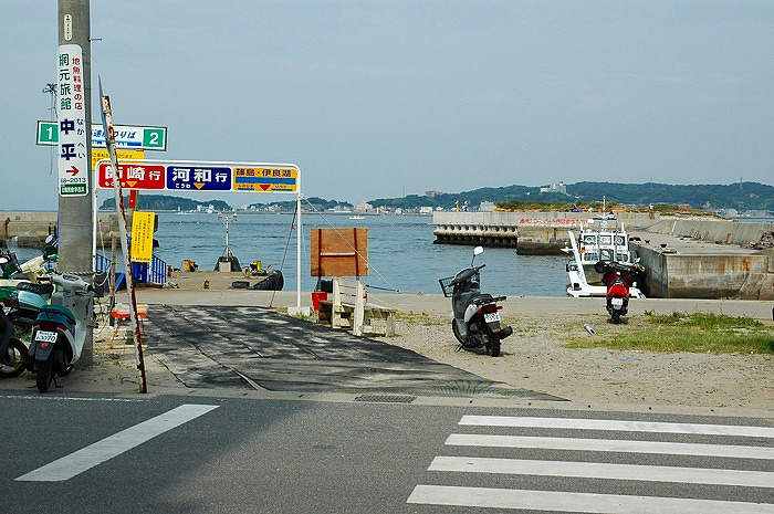 西港の乗船場 左にバイクが沢山止めてあるが、島の人が本土に行くとき、