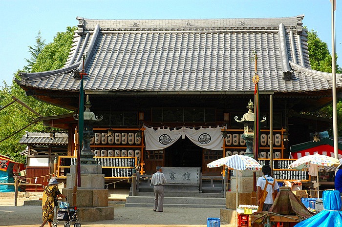 諏訪神社の本堂。早朝のため人気も少ない