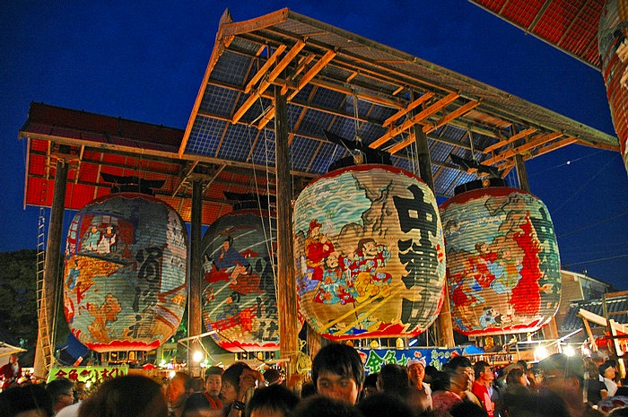全ての提灯に灯りが灯り、祭りは最高潮!! 人出もすごい!!