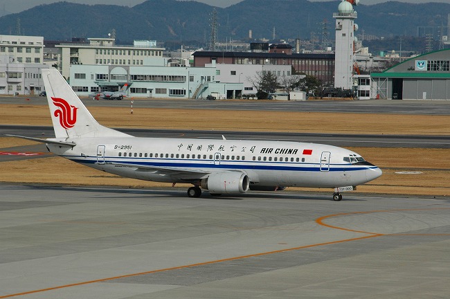着陸してスポットに向かう、中国国際航空公司 AIR CHINAの旅客機