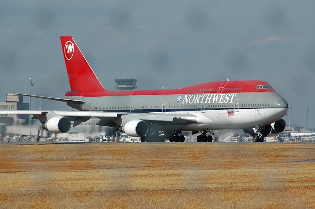 滑走路に向かう Northwest航空のジャンボジェット機!