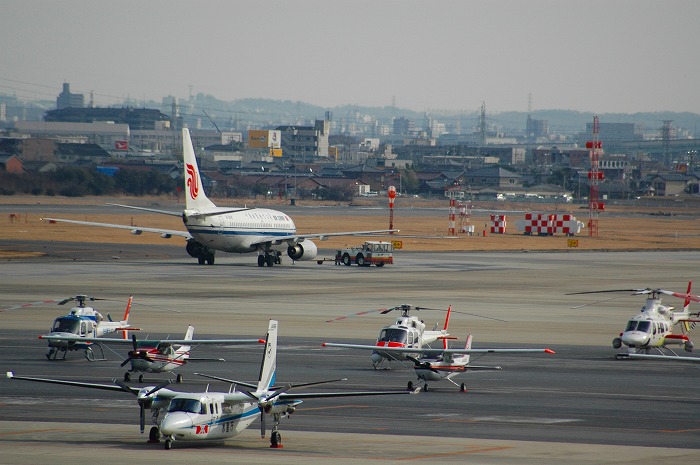 空港建物より東方、小型機の駐機場を望む! なんだか模型飛行機のようである。