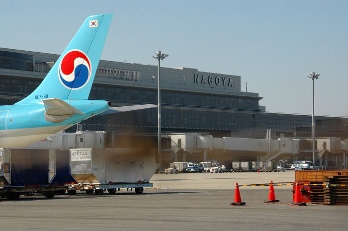 滑走路側から見た名古屋空港(国際線部分)の建物です。