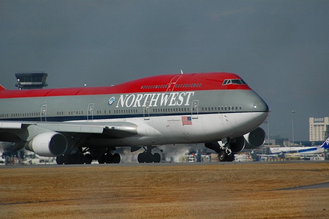 出発中の NORTHWEST航空のジャンボ機! さすが貫禄だなーーーあ!