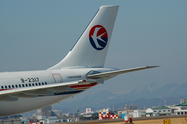 中国東方航空 CHINA EASTERN の旅客機 エアバスA300の尾翼。