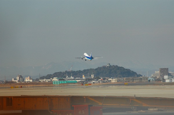 メイン滑走路から離陸し上昇を開始したANA航空機, 丁度滑走路の端くらいの