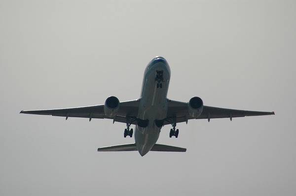 滑走路から離陸し上昇を開始した機体を下から仰いで捕らえたが、着陸と