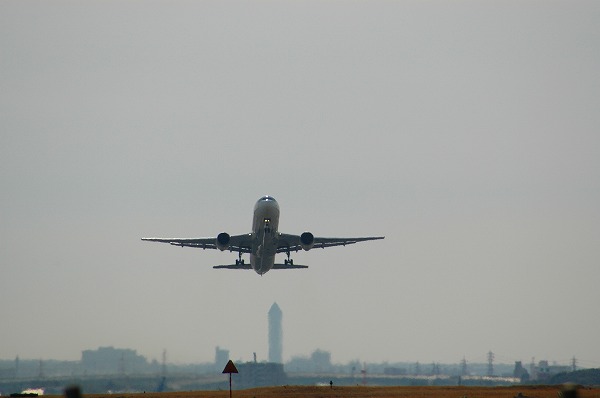 メイン滑走路から離陸し上昇を開始したばかりの航空機を、空港北側にある 公園から300m望遠レンズで捕らえたものである。 轟音とともに頭上に迫 って来る迫力はなんとも言いがたい!