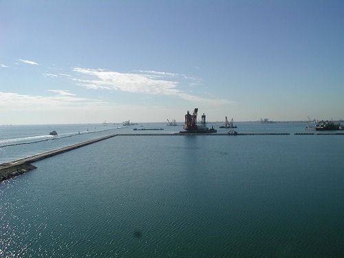 大きな枠があるが、埋め立て用の土留めでしょうか? この時点では 漠然としていて、残念ながらどのような工法で埋め立て作業を進めて 行くのかは、よくわからない!
