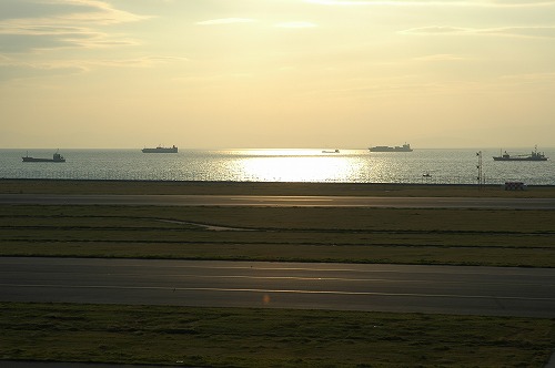 未完成の滑走路から、夕日に映える海を見たけど