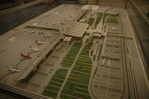 右側は駐車場、左上は国内線の駐機場、左下は国際線の駐機場