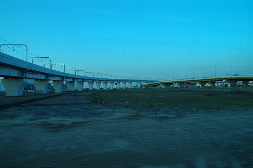 まだ一台も踏み入れていない、左が名鉄高架橋、右が道路橋である。