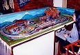 昭和50年代、我が家の鉄道模型は全盛期でした、レイアウトの製作には約1年を要し、内には電動式ポイント、踏切自動警報装置などを完備し、非常にリアルなものでした。特に考案して自作したポイント連動式信号機や列車追突自動防止装置などは、当時何処にもないすばらしい存在感があり、見物にみえた方からもお褒めの言葉をいただきました。50年の後半には、レールの傷みをはじめとした老朽化が進み、ついに廃線となってしまいました。その当時の記録写真がありましたので、ここにレイアウトの概略をご紹介します。 尚、古い写真を再現しております故、解像度が今一ですが、ご了承ください。