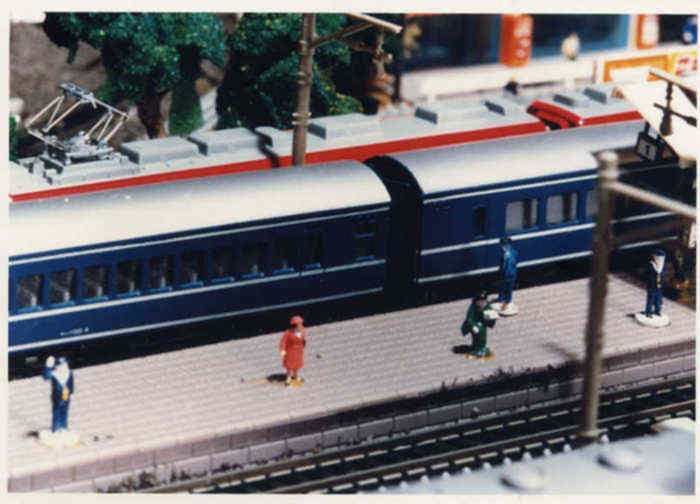 A番線に停車中のブルートレインあさかぜ の様子である、停車時間が長いのでプラットに出て気分転換をしている乗客もいる。
