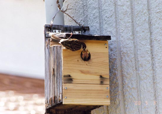 スズメの給餌中