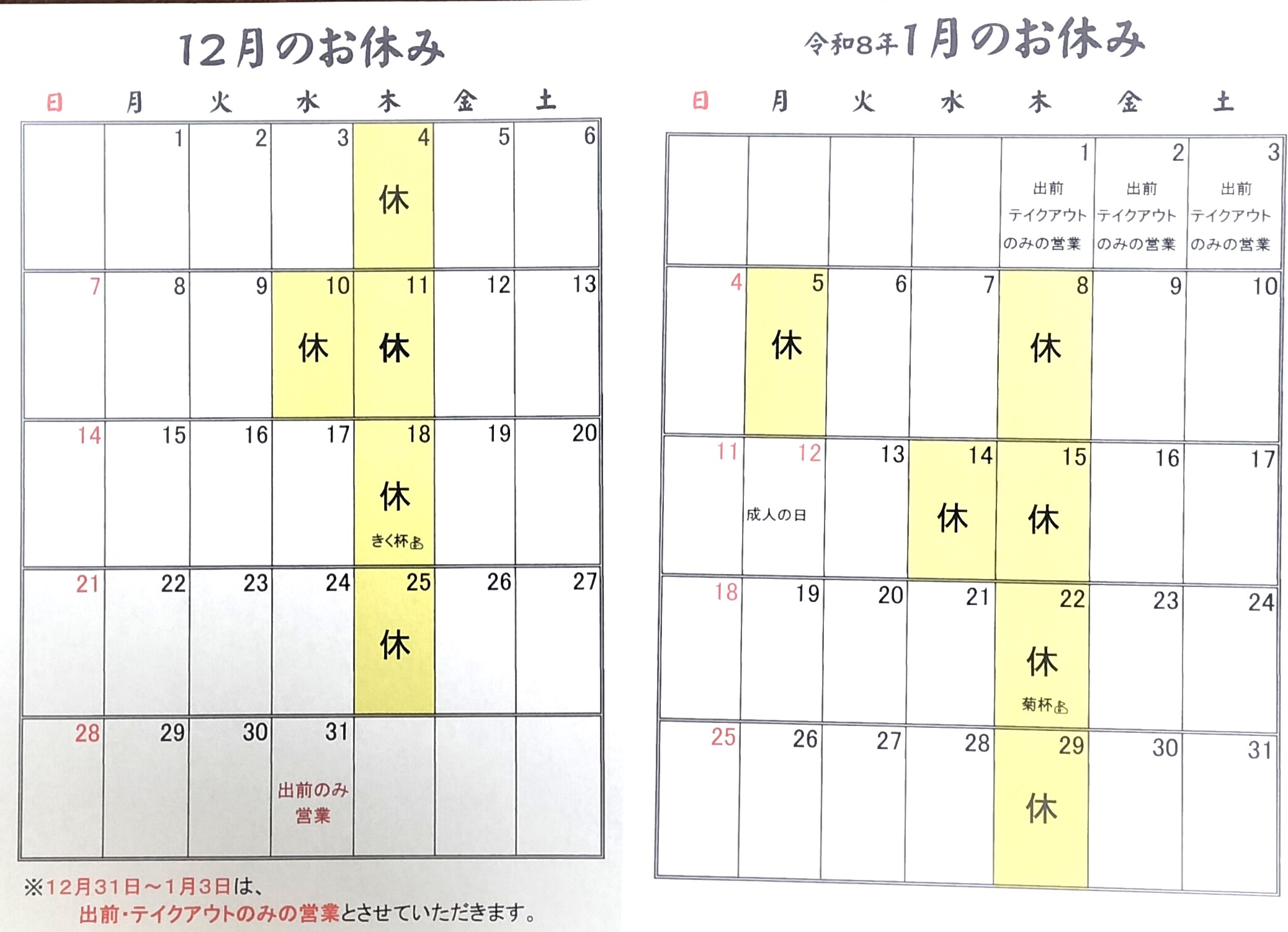 ※12月28日(日)~令和8年1月8日(木)までは 日・祝日ランチメニューとさせていただきます。