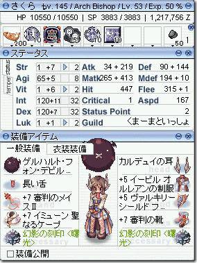 カル耳の2段階目の効果が出るDex108にしてからはAgi振りです。