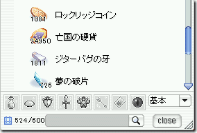 ぬっころりんされてから、持ち物アイテムをチェックしたら…持って来てなかた('▽'ノノ