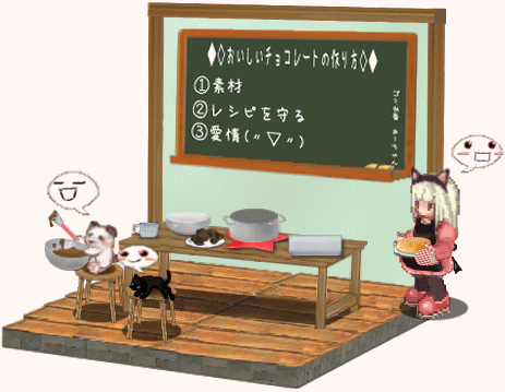 「くまたん、チョコあげるにゃ」 黒猫耳の女の子