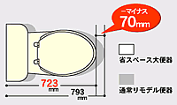 通常のリモデル便器より、前出寸法を抑え、動作空間にゆとりをもたせることができます。