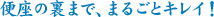 汚れを溜めない・お掃除しやすい便器に加え、便座の裏もラクラクお掃除の「まるごとキレイ!」を実現しました。 今まで見えずにお掃除のしにくかったフチのカタチを変えました。 だから、汚れがついてもサッと拭くだけ。 滑らかな形状で、汚れがたまらないフチなし形状です。 フチなし形状だと、ブラシがしっかり当たるので汚れはスッキリ落とせます。見えないところで汚れがこびりつくことも防げます。 |