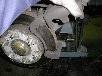 キャリパーのピストンを押し戻したら、元通り復元します。 取り付け後、数回ブレーキペダルを踏み込んで確認をします。 |
