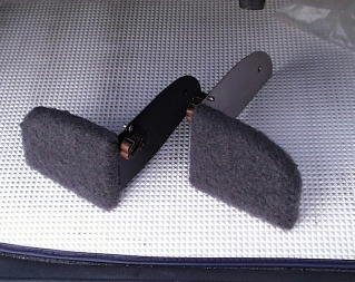 内装側面にフックを掛けて、吊ります。 そのための金具と、それらを隠すために次の部品を固定。 |