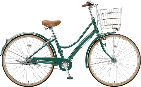 Sラインのお洒落なフレームと籐風の楕円バスケット。22・24サイズはオートライト&6段変速です。