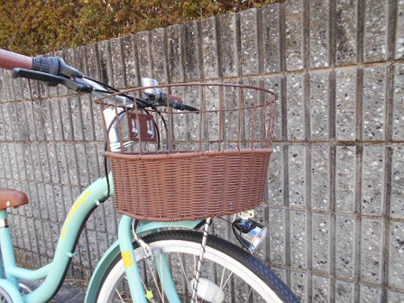 26型のジュニアサイクル、籐風のバスケット、6段変速、オートライト、ローラーブレーキ。