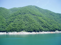 | <御母衣ダム>到着 御母衣湖 青空と水の色が綺麗・・ 遥かかなたまで湖 大きいです |