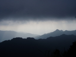 | 今にも ドシャー!!ときそうです 景色は幻想的で まるで水墨画のよう・・ ”写真を撮っている場合でにゃ〜ご!” ^^ 急いで山を降りなければ・・ |