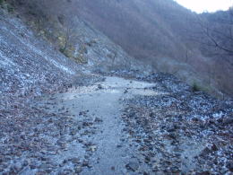 <南赤石林道> 前半は、狭路の舗装道ですが、後半はダートで水溜りもたっぷり、所々随分荒れている所もあります。