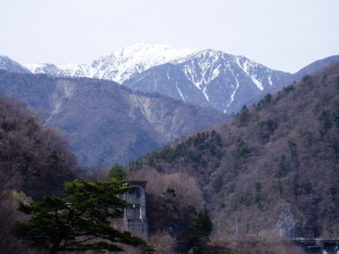南アルプス <上河内岳?>が 見えます。 まもなく畑薙ダム。 時折 綺麗な雪景色が現れ さすが 南アルプス公園線の