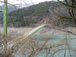 あまりに 近代的で 風情もなく なぜに 吊橋であるのか? 近くの寸又峡 「夢のつり橋」に 対向したのかな・・。