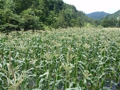 「日本の里100選」 根羽村に入ると、一気に田舎の景色に変わります。 そして、道端には、とうもろこし畑が多く見られます。