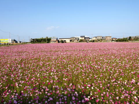 県道沿いに綺麗なコスモス畑があります。 すっごい広くて当然無料
