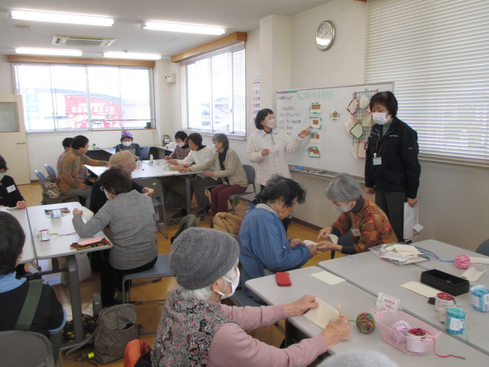 サンサンレディース豊明(センター女性委員会の愛称)主催のワークショップ「アクリルたわしを作ろう」を開催しました。この催しは、女性会員の拡大を目的として、会員や市民のみなさんを対象に行われたもので、会員13人、一般参加14人が参加しました。アクリルたわしづくりのほか、レクリエーションや茶話会では、会員が自分の仕事を紹介するコーナーを設け、センターPRに努めました。