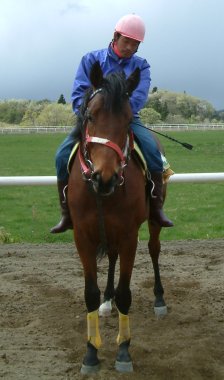 | ショートトラックでのダク、キャンターの動きも軽快で結構首を使うフォームで好感が持てました。番号が一番若いため20頭の先頭をつとめていましたが、騎乗者の指示によく従っている感じがしました。 ダートコースの調教でも息遣いも良くかなり仕上がっている感じが見受けられました。 騎乗者の方は「このくらいの仕上がりで入厩する馬もいる」「上の兄弟より走る」「脚元は丈夫」「馬群に入ると前へ出ようとする」「気性は素直」という話でなかなかの好感触。 第13仔ですからこの値段(600万円)でしょうが、母はイタリアオークス馬 、走られても驚けません。 ちなみに、母親が高齢出産で生んだ子で走った有名な馬はセクレタリアト(米三冠馬)ですが、セクレタリアトは、第9仔(母親との年齢差は18年)です。フォルテは第13仔(母親との年齢差19年)ですからネックとしてはこのあたりでしょうか。私は気にしません。 現時点で追加出資の一番手です。 | ||