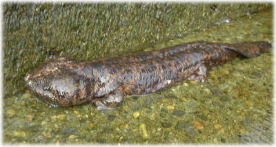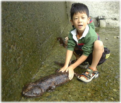 豪雨が一夜開けた和良川、オオサンショウウオ出現!