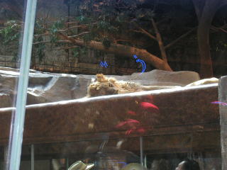 さらにその向かいにあるMGMへ行った。そこは本物のライオンを飼っていることで有名なホテルで早速見にいったが2匹ともぐっすり眠っていた。外人が壁を叩いて起こそうとしているがびくともしない。さすが百獣の王ライオンだ。