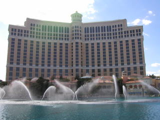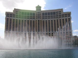 さらにてくてく歩いて2年前にはなかったハーレーダビットソンカフェなんかを覗きつつべラジオに着いた。ここは俺がベガスの中でも一番美しいと思っているホテルだ。「オーシャンズ11」でもラストシーンに使われている。ブラピが立っていたところに立ってみてすこしブラピ気分を味わった。 さらにここではホテルの前の池というか湖で噴水ショーをやる。2年前は時間の関係で見れなかったが今回は始まるまで30分くらいそこで待っていた。ショーが始まるとゆったりとした曲が流れ本当に噴水がダンスしているみたいだった。 本当にすごいと思った。ラストの一斉噴射もものすごい迫力で30分待ったかいがあった。